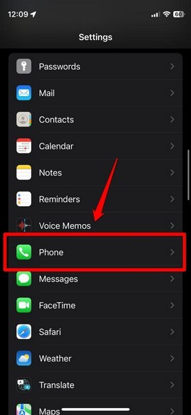 2.ZlokalizujTelefonopcję na liście i dotknij jej, aby otworzyć.