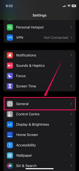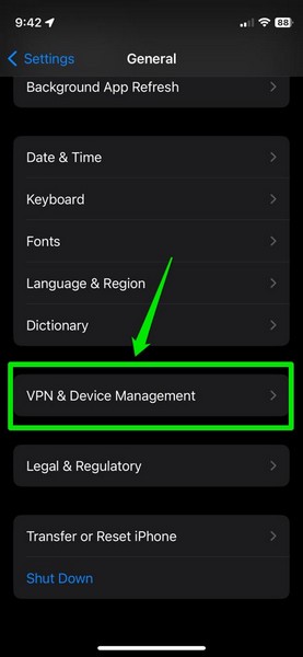 3.Przewiń w dół, aby zlokalizowaćZarządzanie VPN i urządzeniamiopcję i dotknij jej, aby otworzyć.