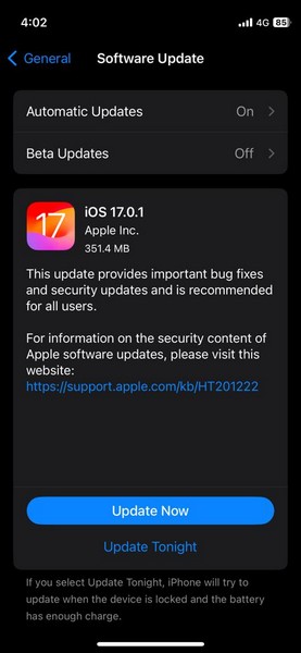 Po zaktualizowaniu iPhone'a do najnowszej wersji iOS, czyli iOS 17.0.1 (w chwili pisania tego artykułu), włącz dane komórkowe na swoim urządzeniu i sprawdź, czy problem niedziałających danych komórkowych został rozwiązany.
