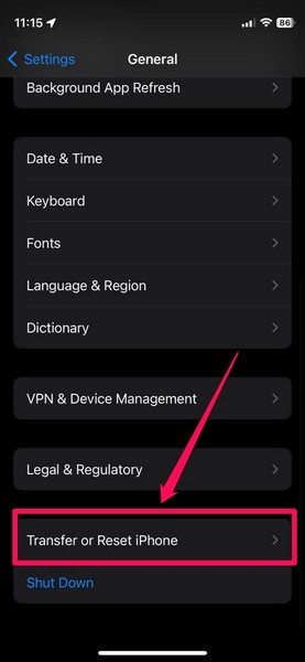 3.Przewiń w dół, aby znaleźćPrzenieś i zresetuj iPhone'austawienia i dotknij, aby otworzyć.
