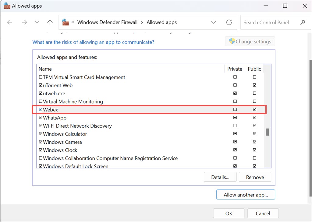 4. Zezwalaj na Cisco WebEx za pośrednictwem zapory systemu Windows 11