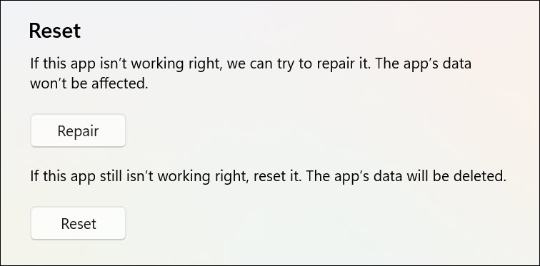 3. Napraw i zresetuj WebEx z ustawień Windows 11