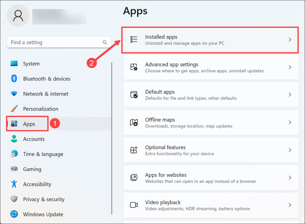 1.Uruchom ustawienia systemu Windows 11 i przejdź doAplikacje> Zainstalowane aplikacje.