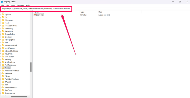 HKEY_CURRENT_USERSoftwareMicrosoftWindowsCurrentVersionPolicies