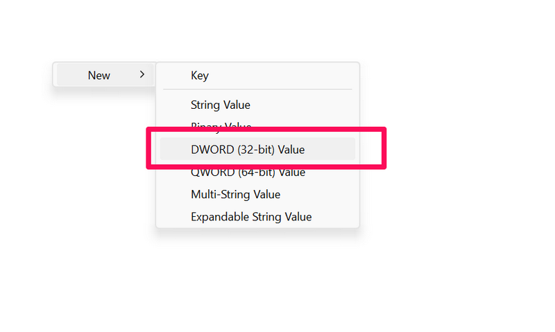 7.Następny,kliknij prawym przyciskiem myszy prawy panelponownie przesuń kursor doNowyopcję i wybierz opcjęWartość DWORD (32-bitowa).opcję w menu kontekstowym.