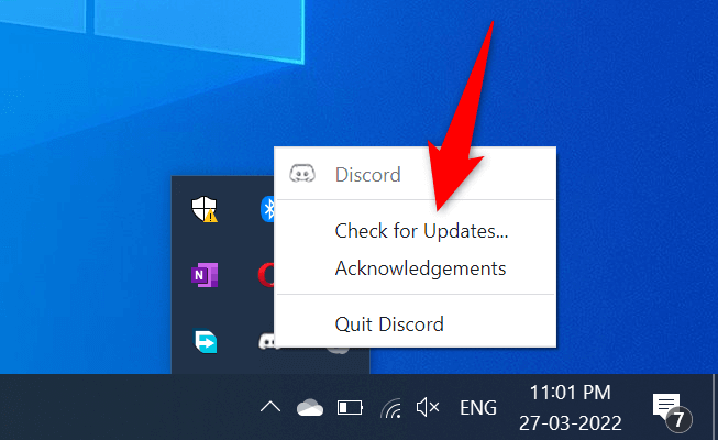 - Kliknij prawym przyciskiem myszyIkona Discordana pasku zadań.
