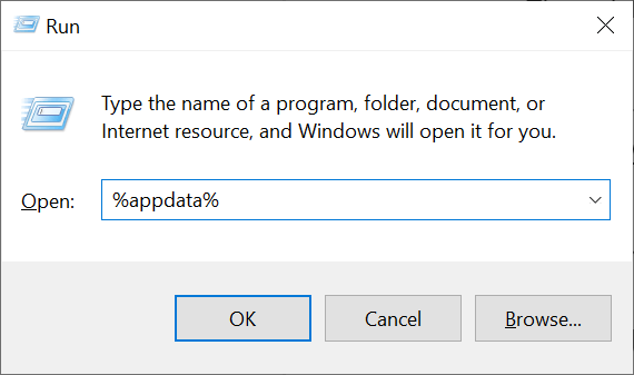 - Wpisz następujące polecenie w polu Uruchom i naciśnijWchodzić:%dane aplikacji%
