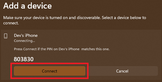 6.Aby potwierdzić, kliknijŁączyćna komputerze, aby sparować telefon.