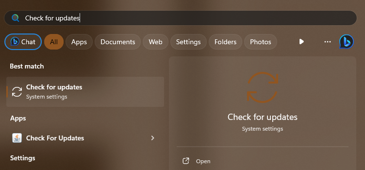 1.OtwórzMenu startowe,typSprawdź aktualizacje,i naciśnijWchodzićklawisz na klawiaturze.