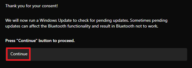6.Po wyrażeniu zgody kliknij przyciskKontynuowaćaby rozpocząć proces, i postępuj zgodnie z instrukcjami wyświetlanymi na ekranie.