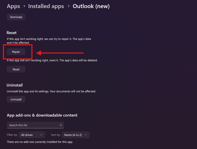 Aby naprawić aplikację na komputerze lub laptopie z systemem Windows 11, wykonaj poniższe czynności: