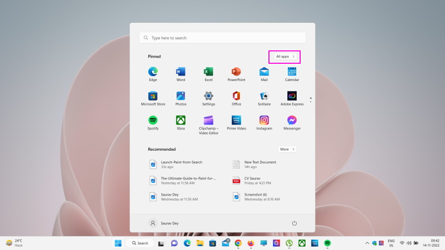 1.UruchomMenu startoweklikającIkona Windowsana pasku zadań komputera z systemem Windows.