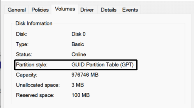 4.Na koniec sprawdź, czy dysk używa schematu partycji GPT czy MBR. Jeśli korzysta ze schematu partycji MBR, przekonwertuj go na schemat partycji GPT, aby go rozwinąć. Możesz sprawdzićzałączony samouczek firmy Microsoftpoznać kroki prowadzące do tego samego.