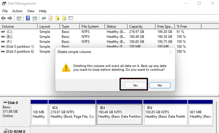 4.wUsuń prosty woluminokno, wybierzTakaby usunąć wszystko z wybranego dysku.