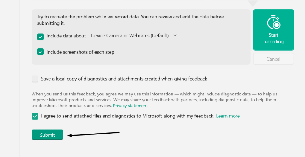 7.Na koniec zaakceptuj wymienione warunki i kliknij przyciskSkładaćprzycisk, aby zgłosić problem.