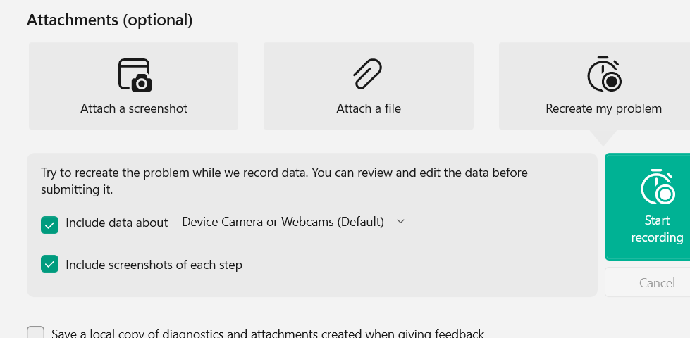 6.PodZałączniki (opcjonalnie)sekcji, możesz także załączyć zrzut ekranu lub film przedstawiający problem.