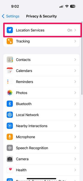 1. Wykonaj kroki 1-4 z poprzedniej poprawki(#Popraw 3) Dootwórz ustawienia usług lokalizacyjnychstronę na swoim urządzeniu.