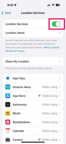 3. Upewnij się, że usługi lokalizacyjne są włączone na Twoim iPhonie