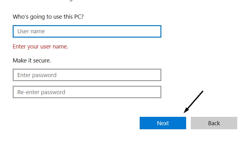 4.WybieraćDodaj użytkownika bez konta Microsofti wprowadź nazwę i hasło, które chcesz ustawić.