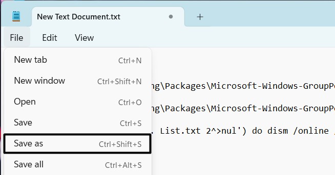 dir /b %SystemRoot%servicingPackagesMicrosoft-Windows-GroupPolicy-ClientExtensions-Package~3*.mum >List.txt