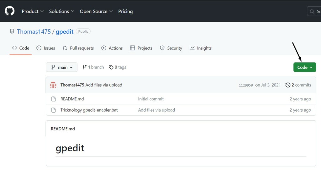 1.TrzaskTutajiść do stronę GitHub Edytora zasad grupy i kliknij przyciskKodprzycisk na nim.