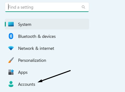 1.OtwórzAplikacja Ustawieniana komputerze z systemem Windows 11 i wybierzKontaod lewej.