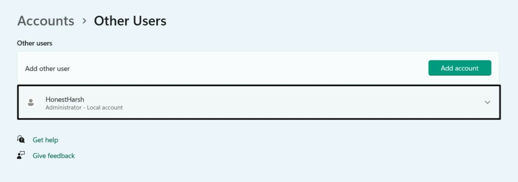 2.WybieraćInni użytkownicypod Ustawienia kontai kliknij swoje aktywne konto, aby wyświetlić więcej opcji.