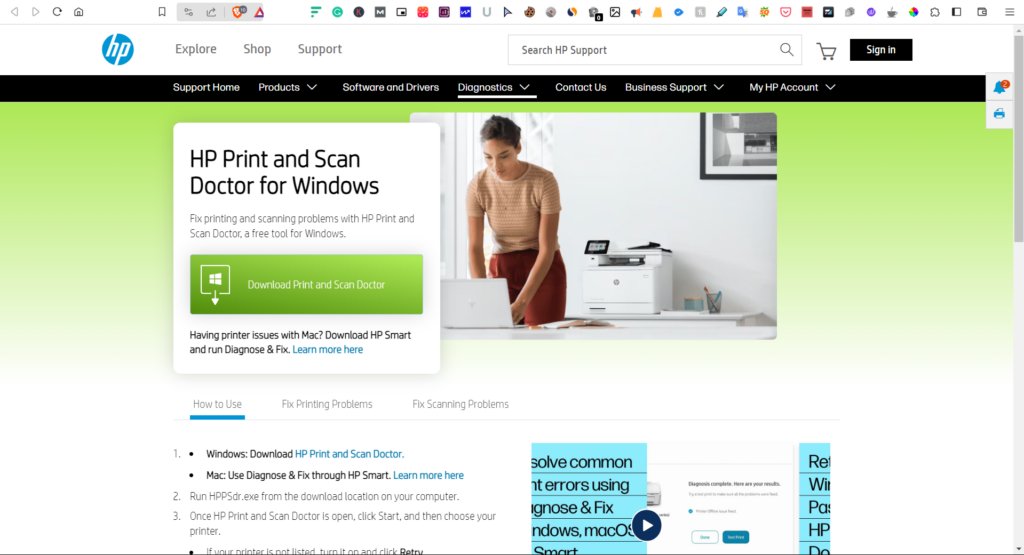 Kilku użytkowników na forach internetowych zasugerowało, że dotyczy to użytkownikówUruchom narzędzie HP Print and Scan Doctorna komputerze, ponieważ zdiagnozuje i naprawi problemy z drukarką i skanerami. Sugerujemy również zrobienie tego samego i sprawdzenie, czy naprawia ten problem na twoim urządzeniu. Postępuj zgodnie z poniższymi krokami, aby wiedzieć, jak wykonać narzędzie HP Print i Skanowanie lekarza na komputerze: