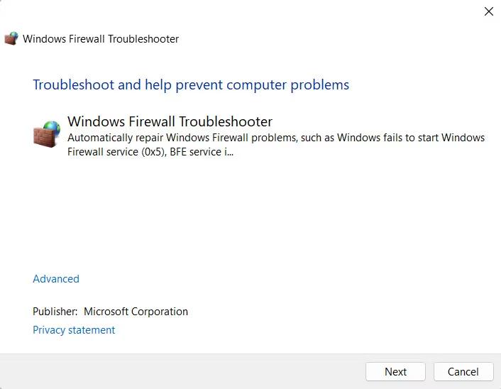 Zaleca się rozpoczęcie rozwiązywania problemów za pomocą oficjalnego narzędzia do rozwiązywania problemów z zaporą sieciową udostępnianego przez usługi automatycznego rozwiązywania problemów firmy Microsoft. Jeśli masz problemy z włączeniem zapory w systemie Windows, usługa przeskanuje system w poszukiwaniu ukrytych problemów, które mogą blokować zaporę. W przypadku wykrycia problemu system zaproponuje odpowiednie środki zaradcze, które można wdrożyć ręcznie lub za pomocą narzędzia do rozwiązywania problemów. Narzędzia do rozwiązywania problemów można używać w następujący sposób: