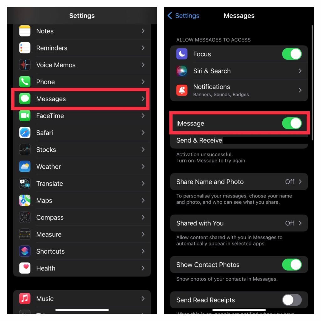 4. Upewnij się, że iMessage nie jest wyłączony