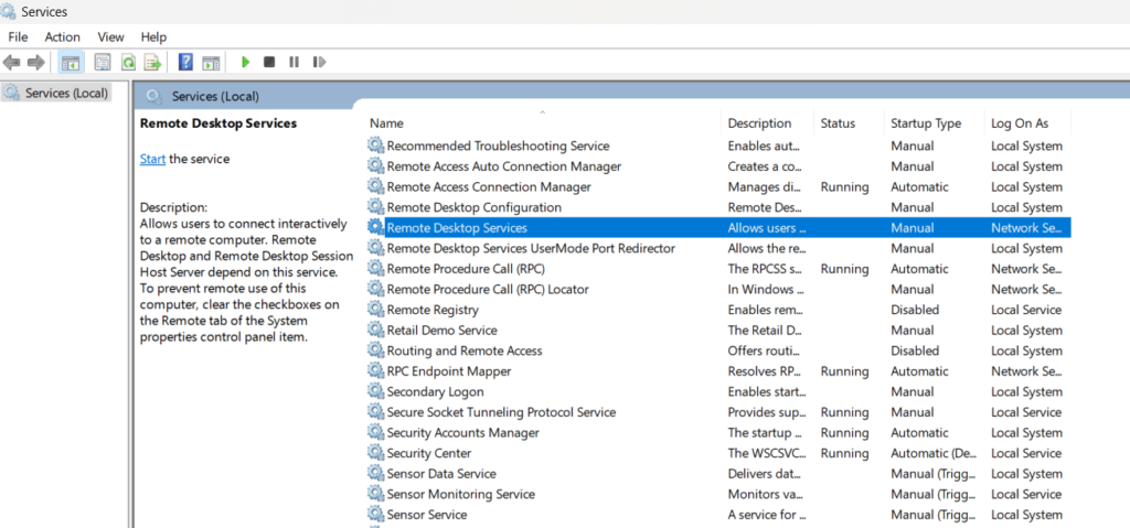 Aby ponownie uruchomić usługę Podłączanie pulpitu zdalnego w systemie Windows, wykonaj następujące kroki: