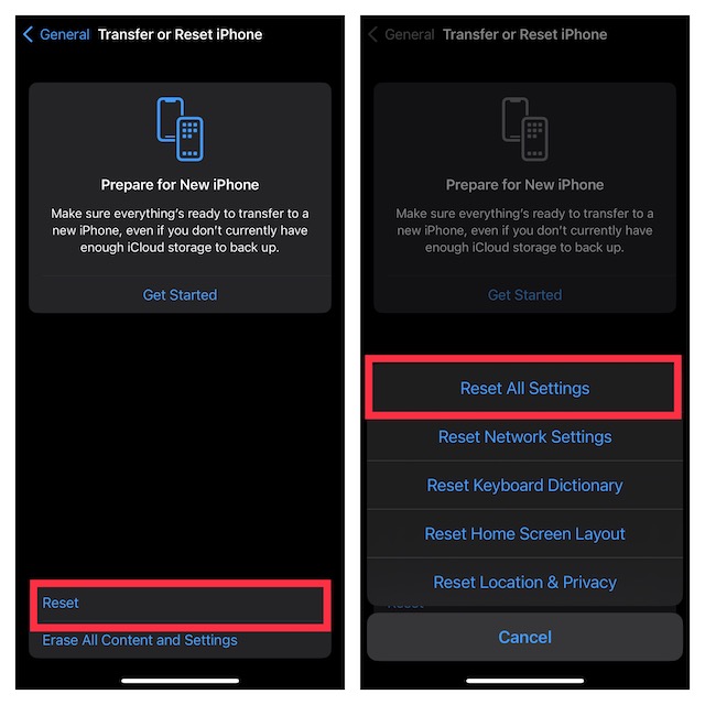 Na tym etapie nie można wykluczyć uszkodzonych ustawień systemowych lub tych, które zostały spartaczone. Dlatego właściwym sposobem rozwiązania tego problemu byłoby zresetowanie wszystkich ustawień, co wymusi przywrócenie wszystkiego do stanu domyślnego, aby można było dostroić ustawienia od zera.