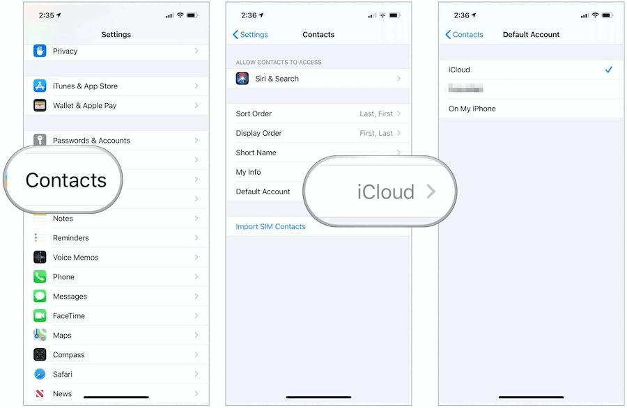 Jak zweryfikować domyślne ustawienia konta, aby naprawić problem braku kontaktów iPhone'a: