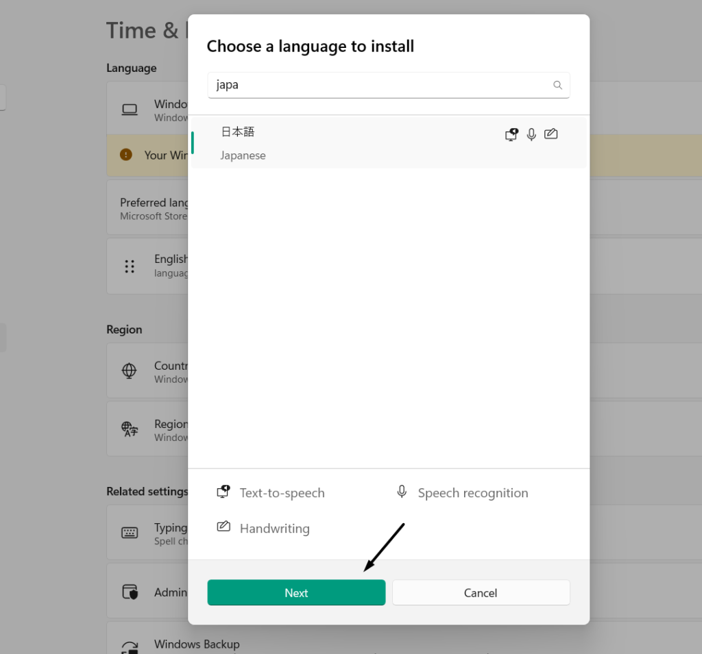 6.Na koniec kliknijZainstalowaćprzycisk, aby zainstalować japońską klawiaturę na komputerze z systemem Windows 11.