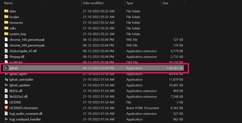 6.Teraz,kliknij dwukrotnie plik lghub (aplikacja).na liście, aby uruchomić program G Hub na komputerze lub laptopie z systemem Windows 11.