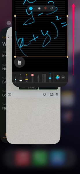Problem z niedziałającą funkcją Notatki matematyczne w obsługiwanych aplikacjach na iPhonie może być również wynikiem usterek technicznych w aplikacji. Jeśli więc masz pewność, że piszesz odręcznie równania z precyzją, ale nie możesz włączyć funkcji Notatki matematyczne, aby je automatycznie rozwiązać, możesz spróbować wymusić zamknięcie aplikacji, w której aktualnie korzystasz z tej funkcji, i uruchomić ją ponownie na swoim urządzeniu.