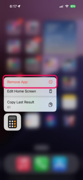 1. Znajdź aplikację Kalkulatorna swoim iPhonie idotknij i przytrzymaj ikonę aplikacjiaby wyświetlić menu kontekstowe.