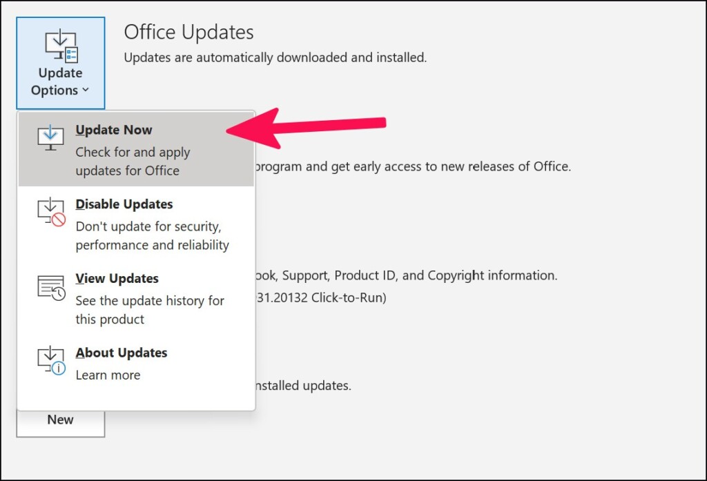 Jedną z głównych przyczyn tego problemu z programem Microsoft Outlook są błędy i usterki w samej aplikacji. Najlepszym sposobem na pozbycie się tych błędów i usterek w aplikacji jestzaktualizuj to. Zatem sprawdź poniższe kroki, aby zaktualizować program Microsoft Outlook na swoim komputerze i rozwiązać z nim problem: