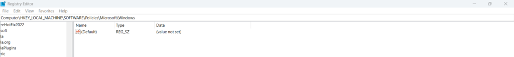 HKEY_LOCAL_MACHINESOFTWAREPoliciesMicrosoftWindows