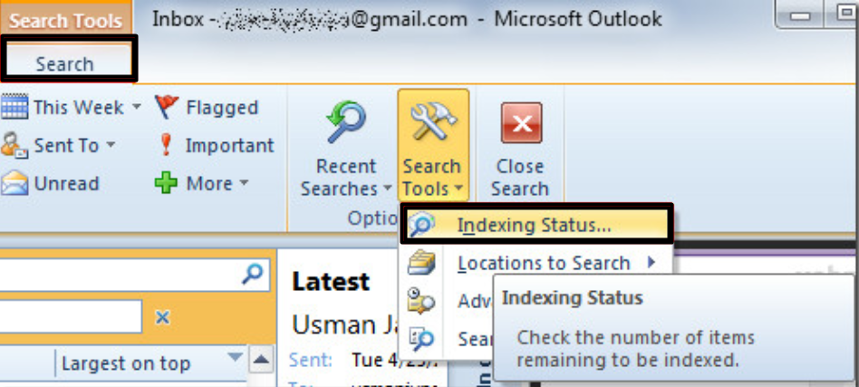 2. Sprawdź stan indeksowania w programie Microsoft Outlook
