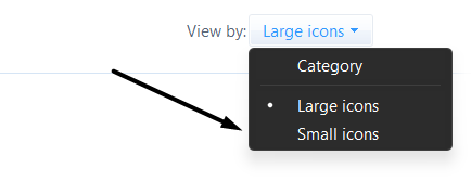 2.RazPanel sterowaniajest otwarty w systemie, musisz się upewnić, żeZobacz wedługopcja jest ustawiona naMałe ikony.