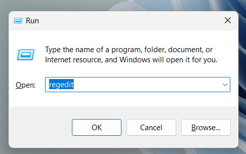 1.NaciśnijWindows + Rskrót klawiaturowy, aby otworzyć plikUruchom okno dialogowe, typregediti naciśnijWprowadź klucz.