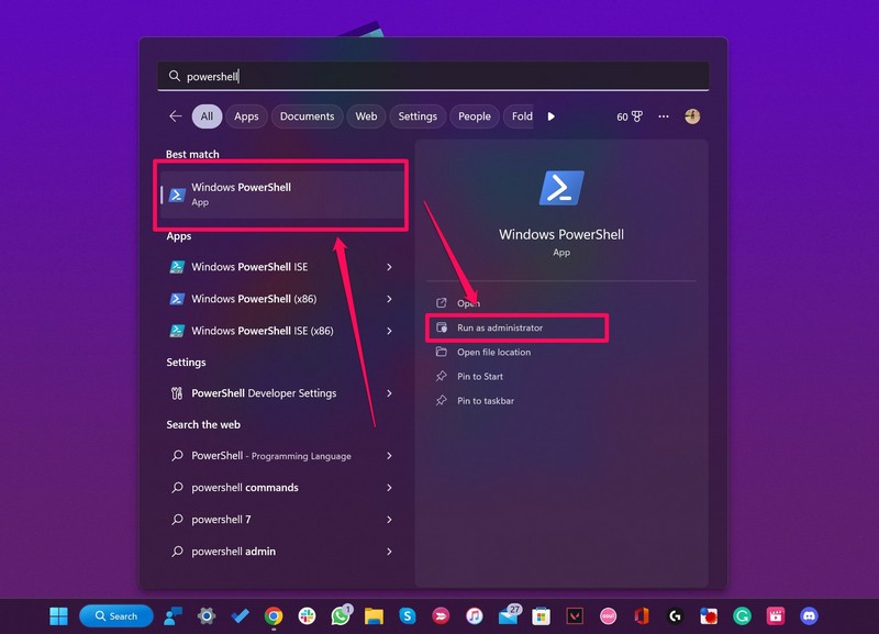 2.KliknijPrzycisk Uruchom jako administratordlaAplikacja PowerShellaby otworzyć podwyższone okno programu PowerShell.