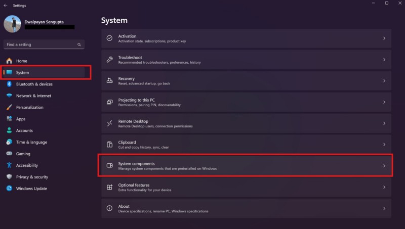 2.PodZakładka Systemna lewym pasku nawigacyjnym kliknij przyciskElementy systemuopcję w prawym panelu.