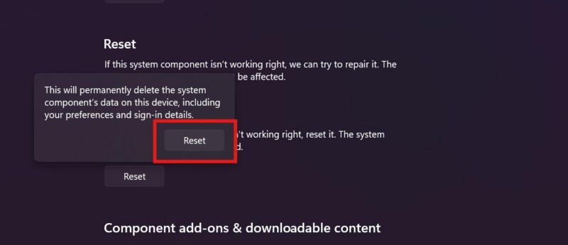 5.Przewiń w dół następną stronę, aby znaleźćPrzycisk naprawyw sekcji Resetuj ikliknij na toaby rozpocząć proces.