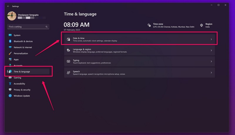 Wykonaj więc poniższe czynności, aby upewnić się, że ustawienia daty i godziny na komputerze lub laptopie z systemem Windows 11 są prawidłowo skonfigurowane i zsynchronizowane: