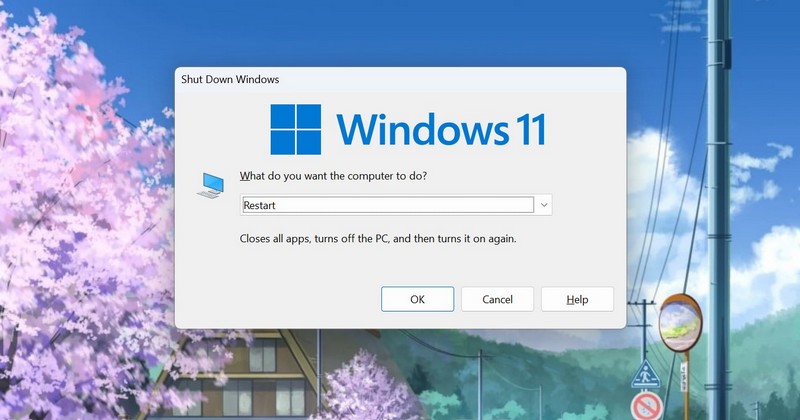 Alternatywnie możesz użyć skrótu klawiszowego Alt + F4 (na ekranie pulpitu), aby wywołaćZamknij system Windowskreator, wybierzOpcja Uruchom ponowniez menu rozwijanego i naciśnijprzycisk OKlub naciśnij klawisz Enter, aby ponownie uruchomić urządzenie.
