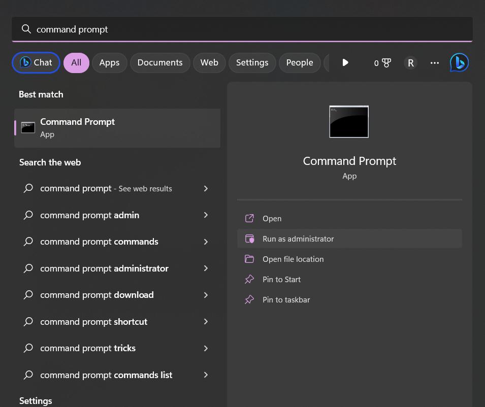Otwórz wiersz poleceń jako administrator. Aby to zrobić, kliknij ikonę wyszukiwania umieszczoną na zadaniu i wpisz „Wiersz poleceń”. Wybierz opcję „Uruchom jako administrator”.