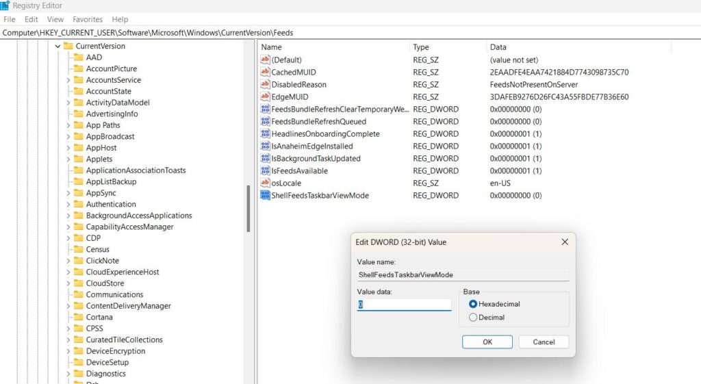 HKEY_CURRENT_USERSoftwareMicrosoftWindowsCurrentVersionFeeds