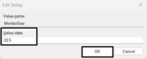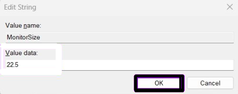 HKEY_LOCAL_MACHINESOFTWAREMicrosoftWindowsCurrentVersionExplorerScaling3.Kliknij dwukrotnie plikKlucz MonitorSizew prawym panelu okna i wpisz22.5wDane wartości:pole.